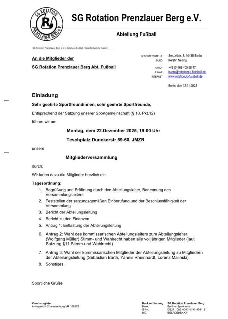 Stellungnahme der SG Rotation Prenzlauer Berg zu den Vorfällen am 16.03.2025